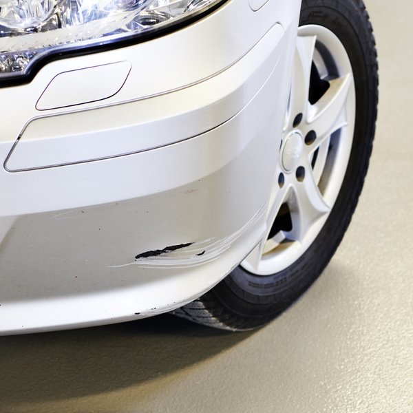Ved lakskader er der forskel på, om det er på plast eller metal. En almindelig hændelse er typiske parkeringsskader på et stødabsorbererhjørne.